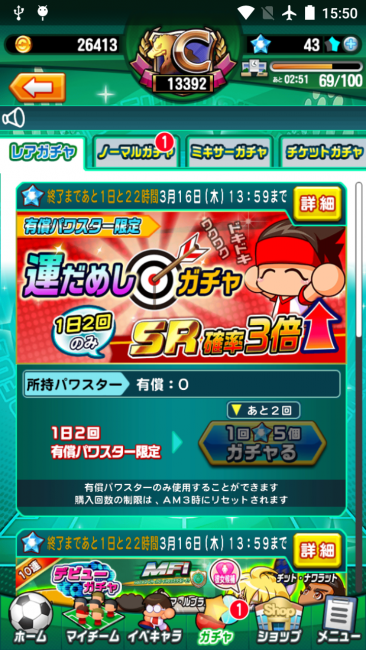 Source: 【パワサカ】3月10日から3月13日までの最新ニュース:ミッドフィールダー応援チャレンジ・ゲドータイムinサクセス・「MFI」ミニゲーム攻略法を公開中!・運だめしガチャ