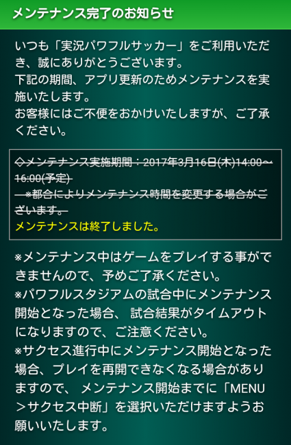 2017年3月16日に、パワサカのゲーム内メニューの「お知らせ」で発表された内容は以下のとおりです。