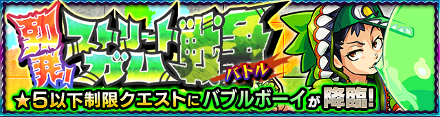 今回のバブルボーイは、木属性の星5以下制限クエストとなっております。