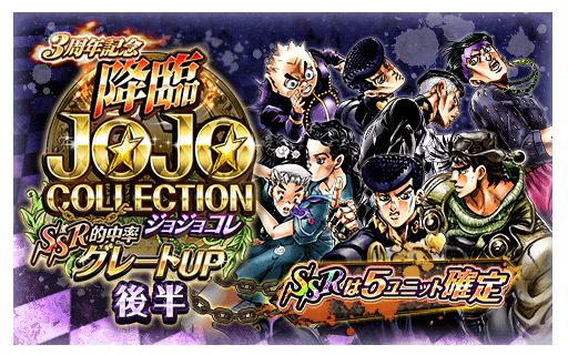 今回の降臨ジョジョコレ後半では、SSRは降臨限定ユニットを含む5ユニット確定!!