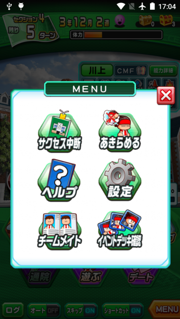 メニュー画面で「チームメイト」をタップすると、現在の評価を確認できます。