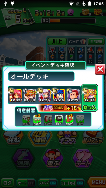 評価はちゃんと上がっているのにイベントが発生しない場合は、彼女候補のイベキャラをイベントデッキにセットしているか確認しましょう。