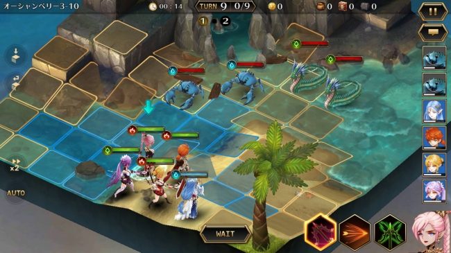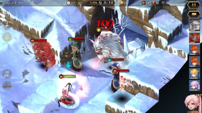 マス目状に広がる、3Dマップの上で、5つの属性の仲間たちを戦略的に動かし戦っていくシミュレーションRPGがGamevil Japanから今春リリースされます。