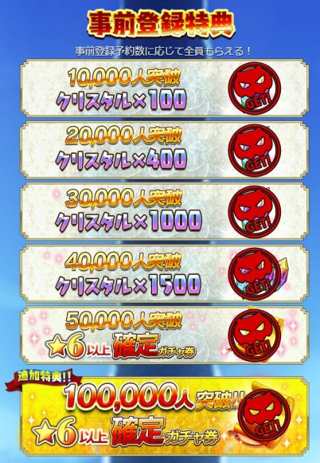 事前登録者全員に豪華特典を開始時にプレゼント!