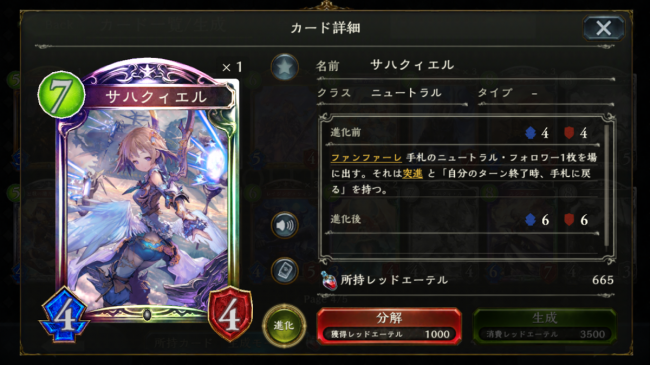 こちらも最も相性のいいカードはサハクィエルです。サハクィエルの能力で呼び出したイスラーフィールは攻撃時の相手リーダー&全体ダメージの能力を使うことができます。