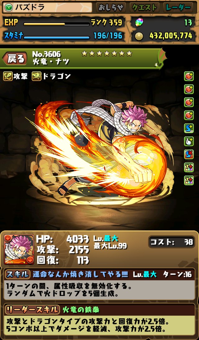 ナポレオンもコンボ強化の覚醒を持ってますし、なにより火ドロップ強化を5個持っているので非常に相性がいいです!