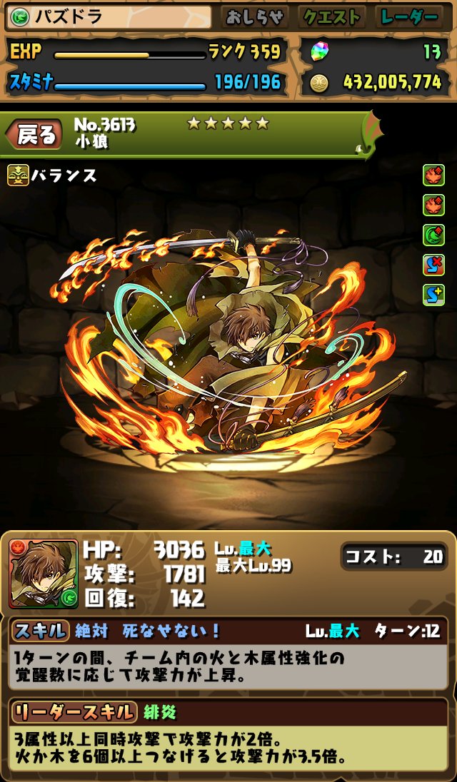 これなら十分な火力ですし、サブで火ドロップ強化の覚醒を持つモンスターを入れてあげればそれだけ火力を引き出すことができます。