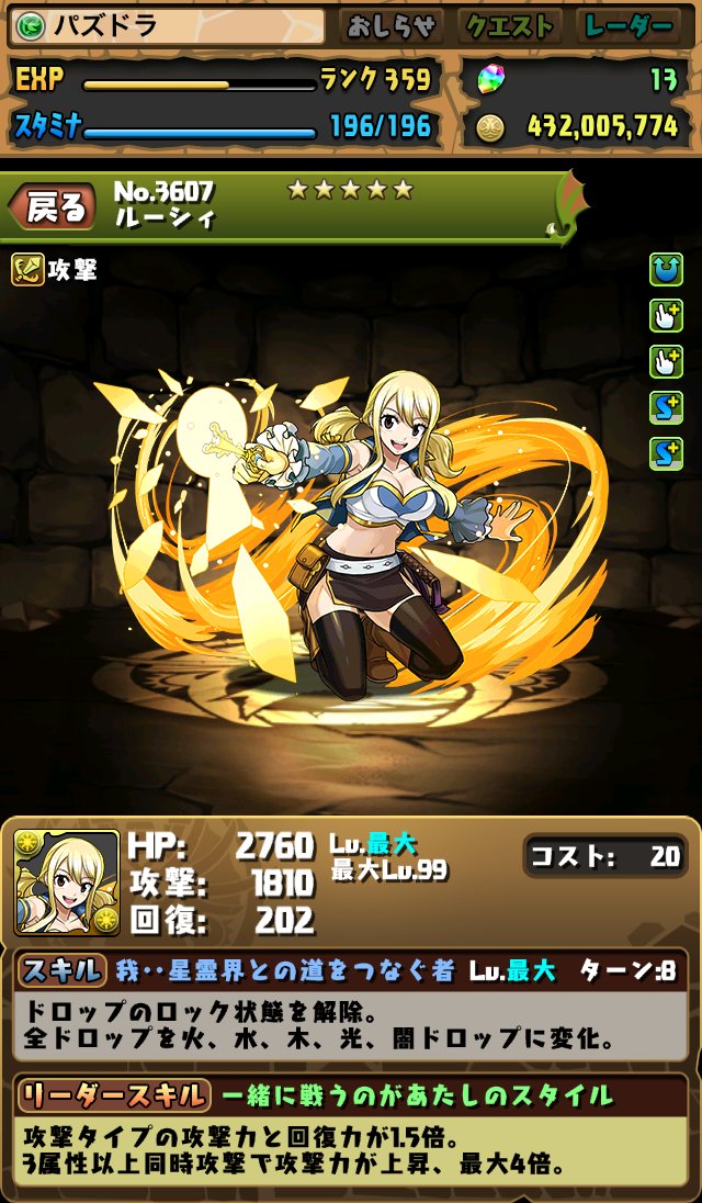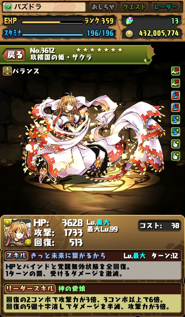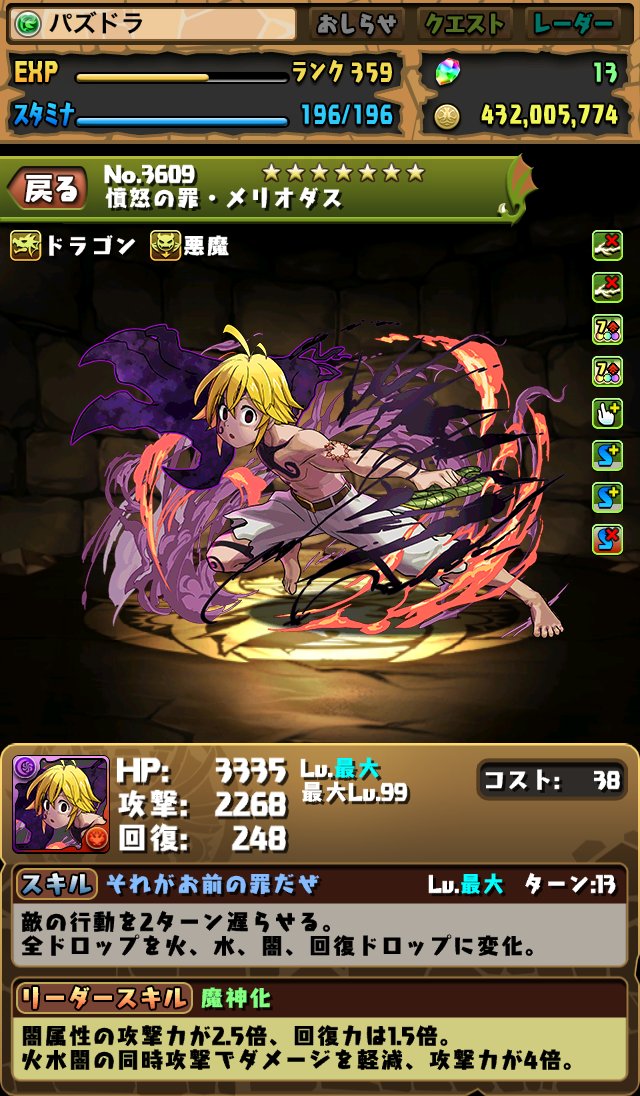 ここから☆6になるのでスキルだけでなく覚醒やリーダースキルも有能になってきます。
