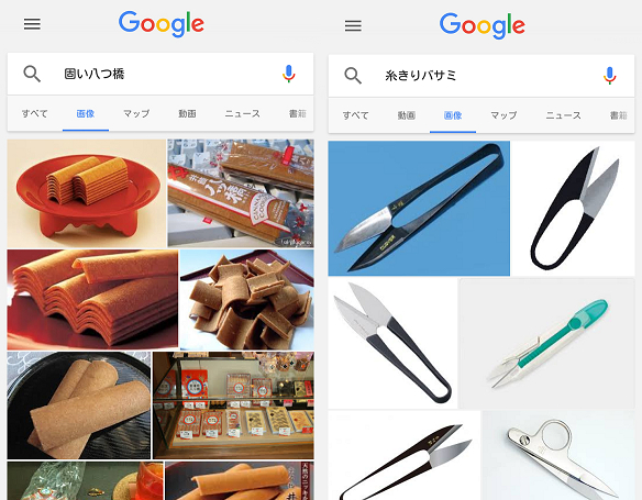 比較用 Google画像検索「固い八つ橋」「糸切バサミ」