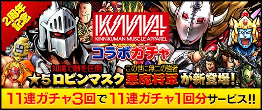 今回新たに加わった「この世に無二の強者 悪魔将軍」&「知識で敵を圧倒 ロビンマスク」をはじめ、8人の★5超人が出現&確率アップ中!!