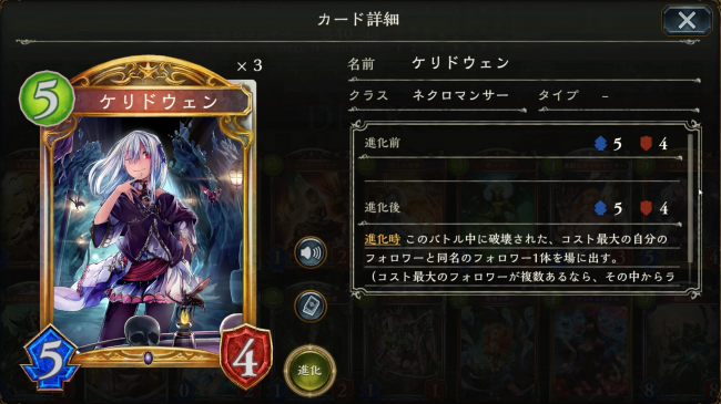 効果:進化時:このバトル中に破壊された、コスト最大の自分のフォロワーと同名のフォロワー1体を場に出す。