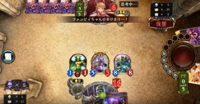 「吸血姫・ヴァンピィ」進化込みの2体と「鋭利な一裂き」で「骸の王」を倒して来ます。