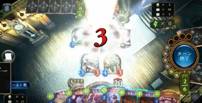 6ターン目時点で相手の体力は3点。