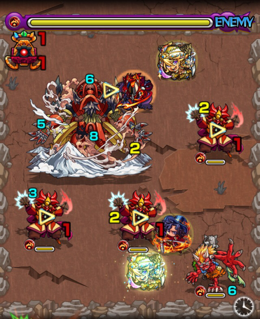 全体的な攻略としまして、毎ステージ鬼が出現致します。今までの超絶クエスト例えばヤマトタケルで鬼は定番中の定番でしたが、白爆発を放ってきますので鬼を優先して欲しいですが魔導師をやりつつ鬼にもダメージを与える必要があります。