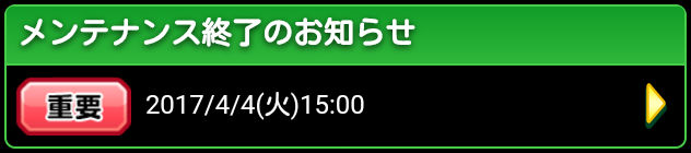 このメンテナンスの後に、『既知の不具合について』・『陽春ログインボーナス配布中!』・『ゲドータイムinスタジアム』・『強ストライカー育成応援ピックアップガチャ小』・『強ストライカー育成応援ピックアップガチャ大』、のお知らせが追加されました。