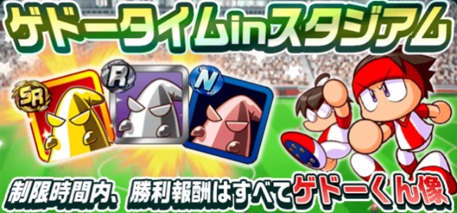 開催日程の時間中にスタジアムで勝利した場合、ゲドーくん像(金)×1、ゲドーくん像(銀)×2、ゲドーくん像(銅)×3、のどれか1種類を獲得できます。