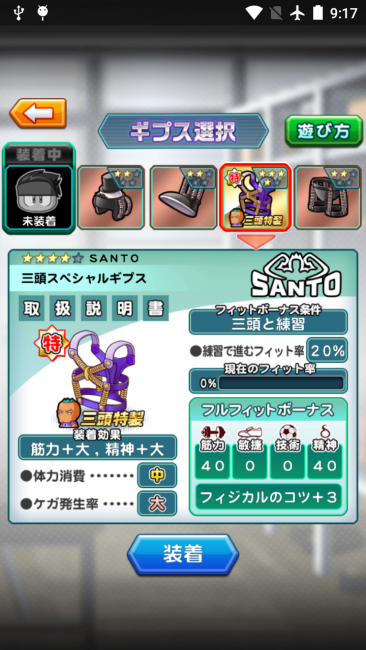 ヒント:ギプスは途中で脱ぐことができます。他のギプスを装着中に「三頭スペシャルギプス」が表示されたら、「三頭スペシャルギプス」に変えましょう。