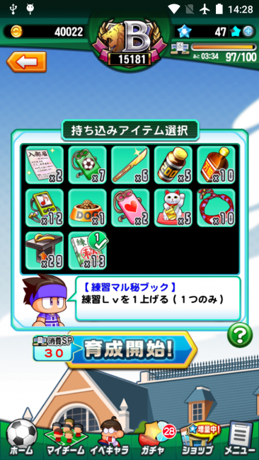 お題22:Lvアップの鉄ゲタを持ちこんで選手を1人育成