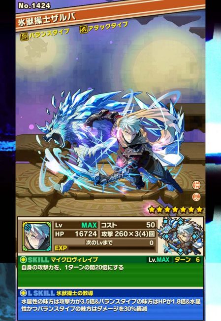 攻撃吸収&自身の攻撃力20倍スキルの強烈アタッカー!「氷獣操士ザルバ」