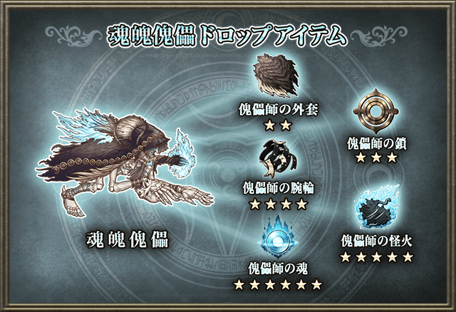 ◆ドロップ素材:傀儡師の外套/傀儡師の腕輪/傀儡師の魂/傀儡師の鎖/傀儡師の怪火
