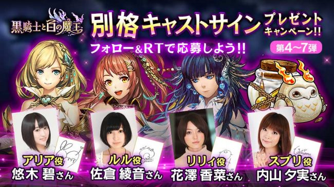 Source: 【RPG】『黒騎士と白の魔王』「別格キャストサイン」プレゼントキャンペーン開始!