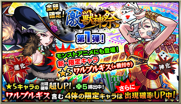 今回、「モンストアニメ」にも登場している「ワルプルギス」が、激・獣神祭の新限定キャラクターとして初登場します!