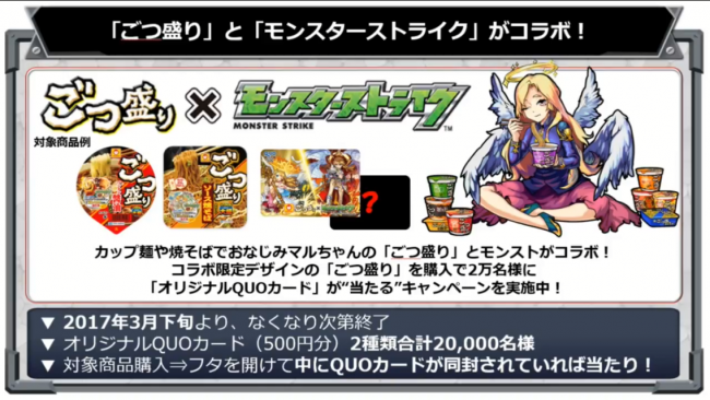 あの即席麺のごつ盛りとモンスターストライクがコラボします。