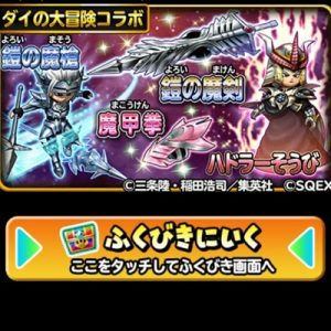 ダイの大冒険コラボイベントで登場したそうびが代わる代わる登場する今回の【ダイの大冒険セレクション】!第1弾では人気のスキル【鎧化】がついたぶきと、ハドラーそうびが再登場です!