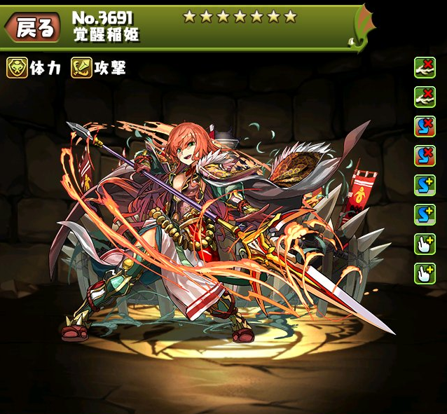 覚醒稲姫 主属性:火 副属性:木 タイプ:体力・攻撃
