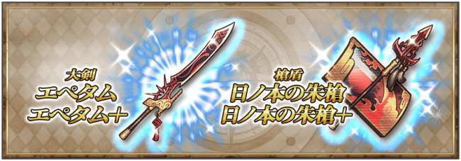 今回の目玉武器は大剣「エペタム」&槍楯「日ノ本の朱槍」