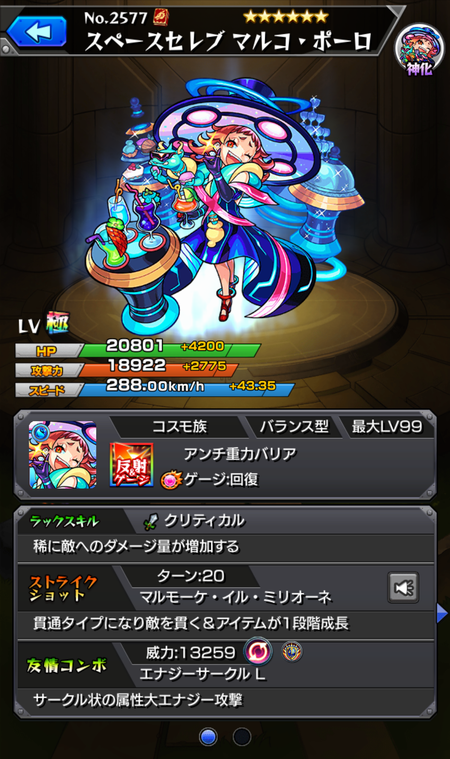 スペースセレブ マルコ・ポーロ(神化)のステータス