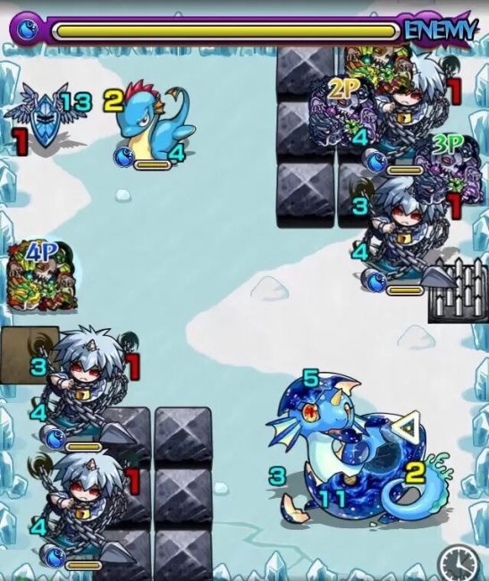 | 神威(神化) | 反射タイプ、ロボットキラーM/ユニバキラーM+アンチワープ(AW)/SSターン短縮。友情コンボの白爆発で味方モンスターの友情コンボを誘発でき、ボスにキラーが有効。ストライクショットのメテオでボス戦の雑魚処理が楽に。 |