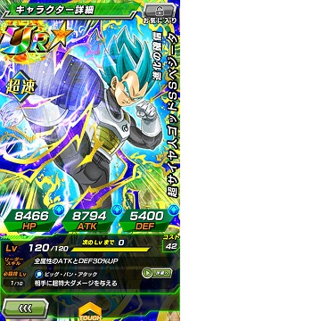 (速属性)SSR【進化を続ける伝説】超サイヤ人ゴッドSSベジータは