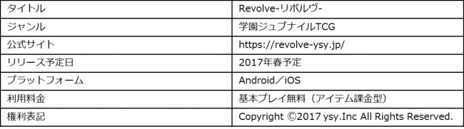 株式会社ysyは、新作スマートフォン向けトレーディングカードゲームアプリ『Revolve』-リボルヴ-についてゲーム内容の精度向上を目的としたオープンβテストを実施すると発表した。