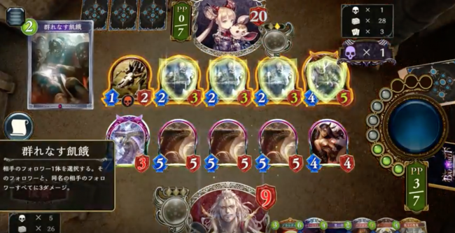 効果:ファンファーレ 攻撃力5以上のヴァンパイア・フォロワーをランダムに1体、自分のデッキから手札に加える。