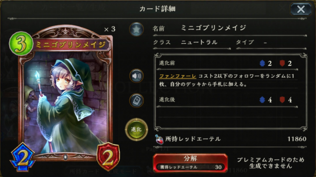 効果:ファンファーレ コスト2以下のフォロワーをランダムに1枚、自分のデッキから手札に加える。