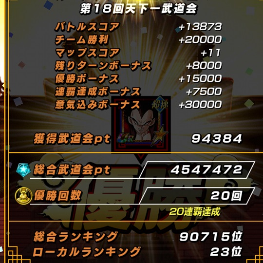 今回はなんとか目標としていたビルスクラス(500万ポイント獲得)と20連覇は達成できました。