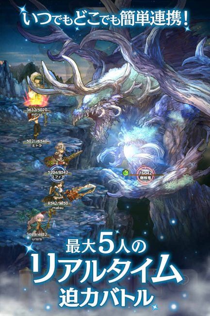 バトルはゲージ行動制で、最大5人とのマルチプレイで協力をしつつ挑むシステムであることが伺えます。