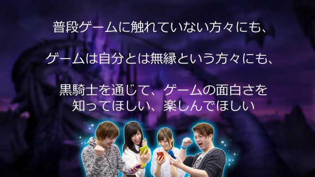 谷氏は元々オンラインゲームでトッププレイヤーになるほどやり込んでいた模様。しかし、世間的にはゲームという趣味は世間的に下に見られがち。そこを「黒騎士」を通じて払拭したいとコメント。