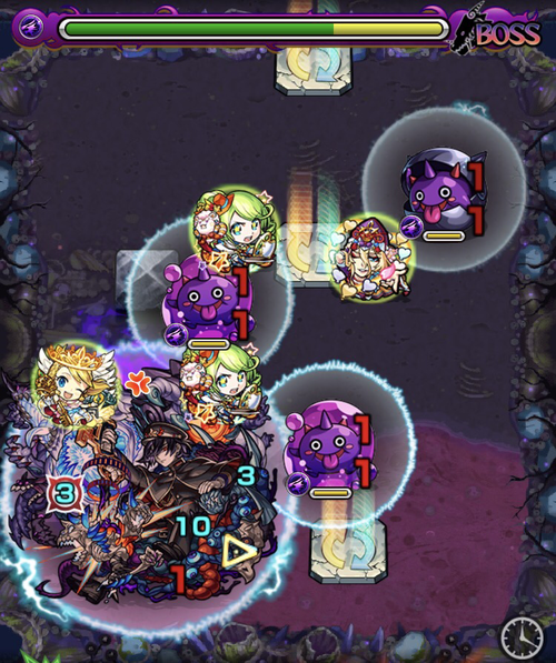 貫通多めのパーティーで挑むことが多いかとは思いますが、最終ステージで下配置をしてしまうと途端にグダリます。最終ステージは上配置、これはボス戦において最低限心がけるようにしましょう。