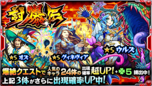 期間中は爆絶クエストに適正のある人気キャラ24体の排出確率UP&ラック5で排出されます。