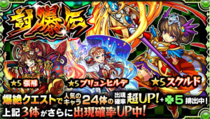 期間中は爆絶クエストに適正のある人気キャラ24体の排出確率UP&ラック5で排出されます。