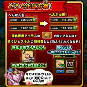 強化用そうびとスキル強化玉をどうぐ化してどうぐ袋をスッキリさせてジェムも貰おう!