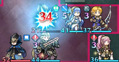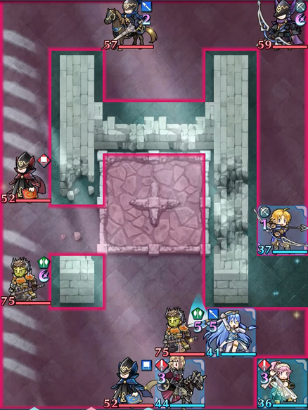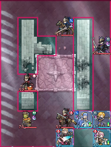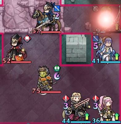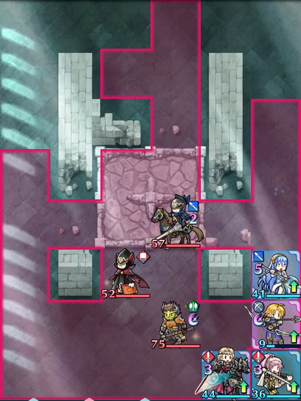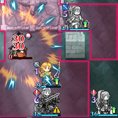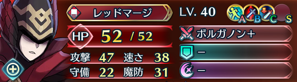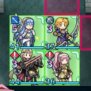 | C | 攻撃の謀策3 | ターン開始時、十字方向にいる、自身より魔防が1以上低い敵は、攻撃-5(敵の次回行動終了まで) |