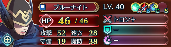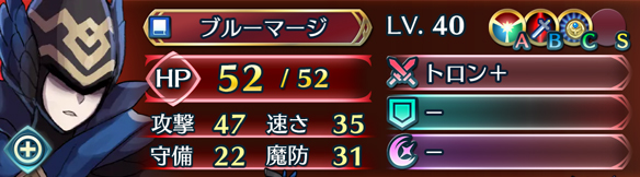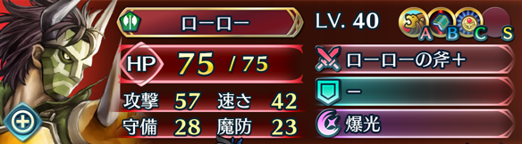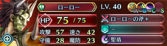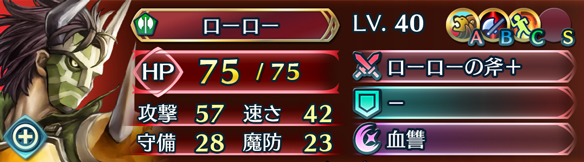 | B | 緑魔殺し3 | 敵の武器種が緑魔で、自分のHPが50%以上の時、自分は絶対追撃、敵は追撃不可 |
