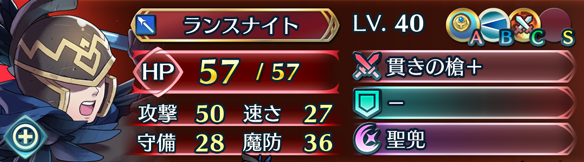 | B | 槍殺し3 | 敵の武器種が槍で、自分のHPが50%以上の時、自分は絶対追撃、敵は追撃不可 |