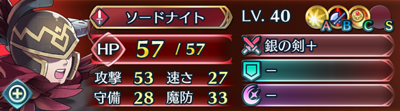 | B | 剣殺し3 | 敵の武器種が剣で、自分のHPが50%以上の時、自分は絶対追撃、敵は追撃不可 |
