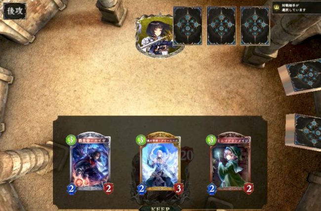 序盤は、「サラマンダーブレス」などの除去カードを優先的にマリガンしたほうがいいかもしれません。「荒牙の竜少女」は「ミニゴブリンメイジ」でサーチできるので交換してしまっても大丈夫です。