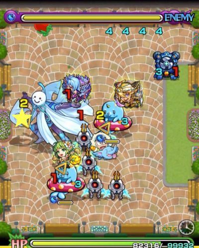 また画面外レーザーの属性も水属性のため、レーザーを一斉に受けてしまったことを考えてパーティーは木属性統一を優先しましょう。