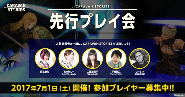 株式会社Aimingは、完全新作MMORPG『CARAVAN STORIES』において、2017年7月1日に行われる先行プレイ会の参加者を募集していることを発表した。